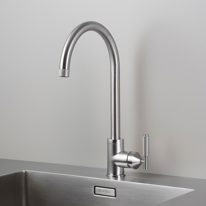 A single euro plug socket made from solid metal and our signature solid metal penny buttons in a STEEL finish