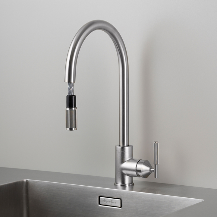 Kitchen Taps / Mixer With Pull Out Spray / Linear / Steel